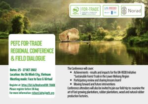 The Vietnam Forest Certification Office (VFCO) and Programme for the Endorsement of Forest Certification (PEFC) will jointly organize the regional conference the field dialogue of the project “Forestry and Trade for Development in ASEAN” funded by UNREDD and implemented by PEFC in Southeast Asian countries. Details of the conference are as follows: