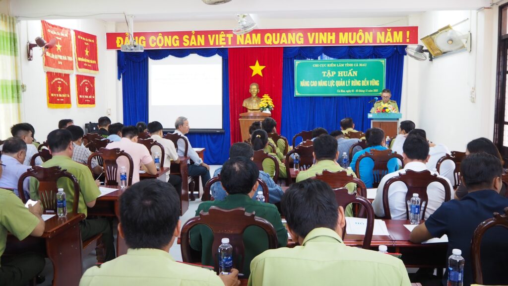 November 1-3, 2023, in Ca Mau Province, the Ca Mau Provincial Forest Protection Department in collaboration with the Forest Science Institute of Southern Viet Nam (FSIS) and the Vietnam Forest Certification Office (VFCO) organized a training course titled “Improving the capacity of sustainable forest management” for forest owners as forestry companies, national parks, protection forest management boards, wood processing companies and armed forces in Ca Mau Province.