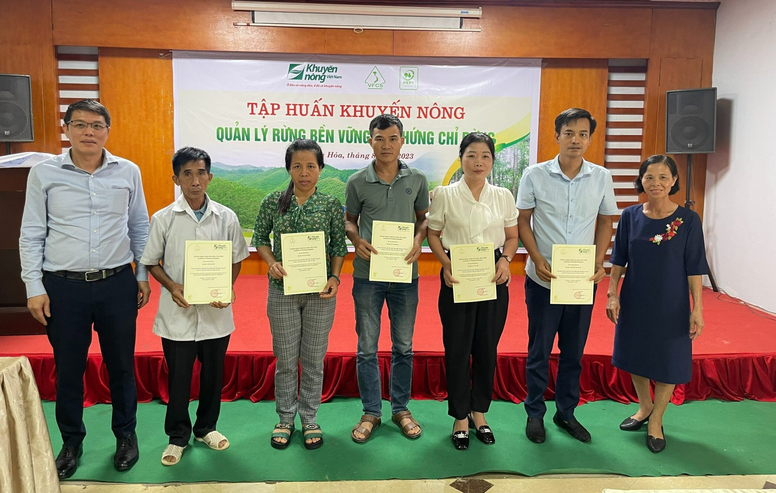 Thông qua lớp tập huấn, các học viên đã được trang bị những kiến thức cơ bản về quản lý rừng bền vững (QLRBV) và chứng chỉ rừng (CCR) như: Hệ thống Chứng chỉ rừng Quốc gia (VFCS), Bộ tiêu chuẩn QLRBV VFCS/PEFC ST 1003:2019, Bộ tiêu chuẩn QLRBV theo nhóm VFCS/PEFC ST 1004:2019, hướng dẫn xây dựng và thực hiện phương án QLRBV, các bước thực hiện xây dựng mô hình QLRBV và cấp chứng chỉ rừng cho nhóm hộ. Các học viên đã thăm quan hiện trường trồng rừng và thực hành phân tích, đánh giá các tác động môi trường, xã hội trong quản lý rừng trồng.