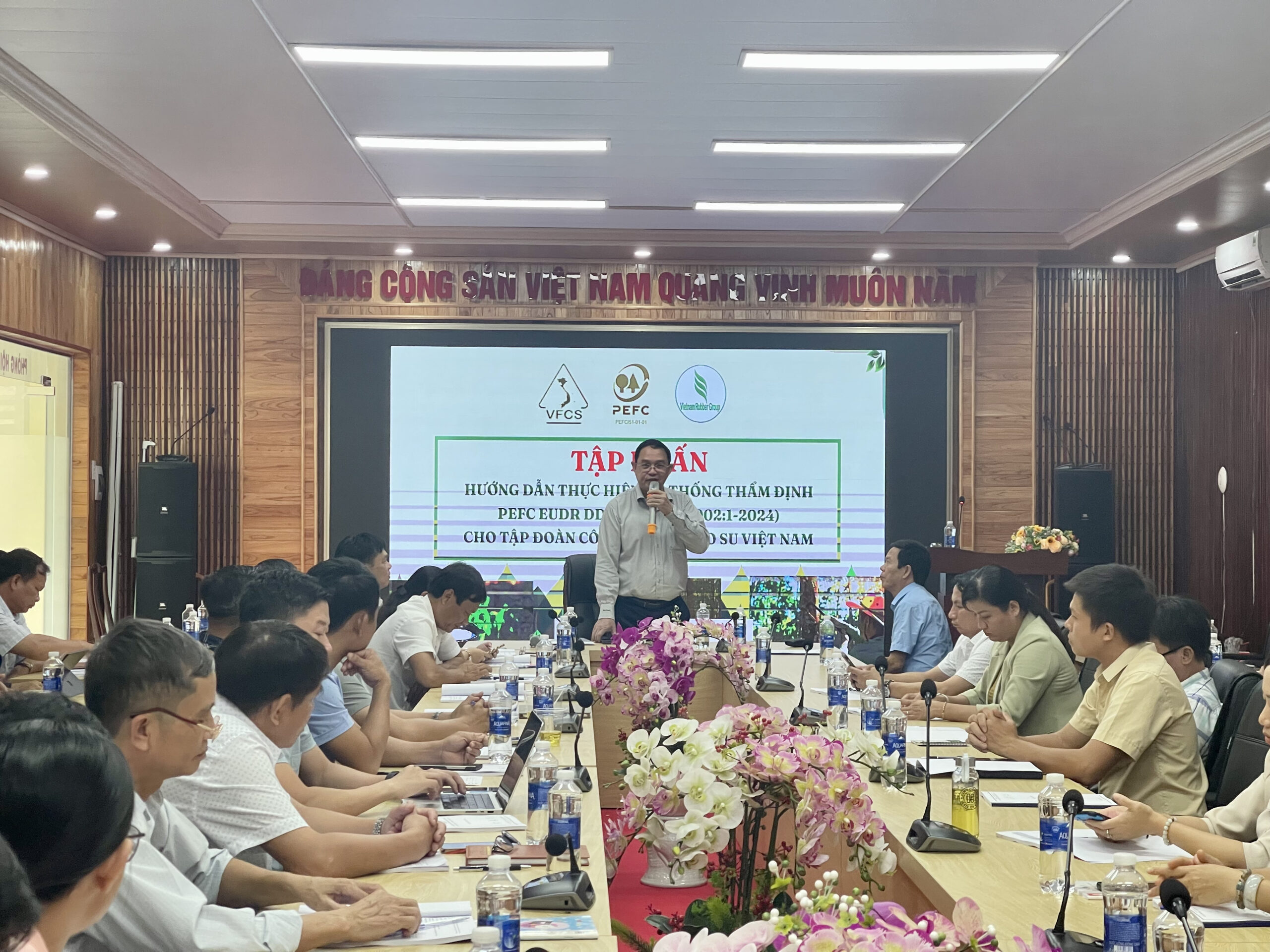 Để đáp ứng các yêu cầu sản xuất hàng hóa không gây mất rừng của Liên minh châu Âu (EUDR) áp dụng với các doanh nghiệp xuất nhập khẩu vào EU từ ngày 01/01/2025, Tập Đoàn Công nghiệp Cao Su Việt Nam (VRG) đã phối hợp với Văn phòng Chứng chỉ quản lý rừng bền vững (VFCO) tổ chức tập huấn cho 22 công ty cao su thuộc VRG tại khu vực Đông Nam Bộ (từ ngày 4-6/9/2024) và khu vực Tây Nguyên (từ ngày 9-11/9/2024) với 98 học viên tham gia.