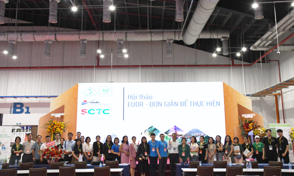 Cũng tại sự kiện này, VFCO và PEFC tổ chức hội thảo “EUDR – Dễ dàng để thực hiện” để chia sẻ với các doanh nghiệp về hướng dẫn thực hiện PEFC EUDR DDS nhằm đáp ứng EUDR. Hội thảo có sự tham gia của 100 đại biểu đến từ các doanh nghiệp ngành gỗ và cao su, các hiệp hội gỗ và tổ chức chứng nhận. Thông qua hội thảo các thách thức và kinh nghiệm thực hiện PEFC EUDR DDS được chia sẻ, góp phần quan trọng trong tiến trình đáp ứng EUDR của các doanh nghiệp Việt Nam.