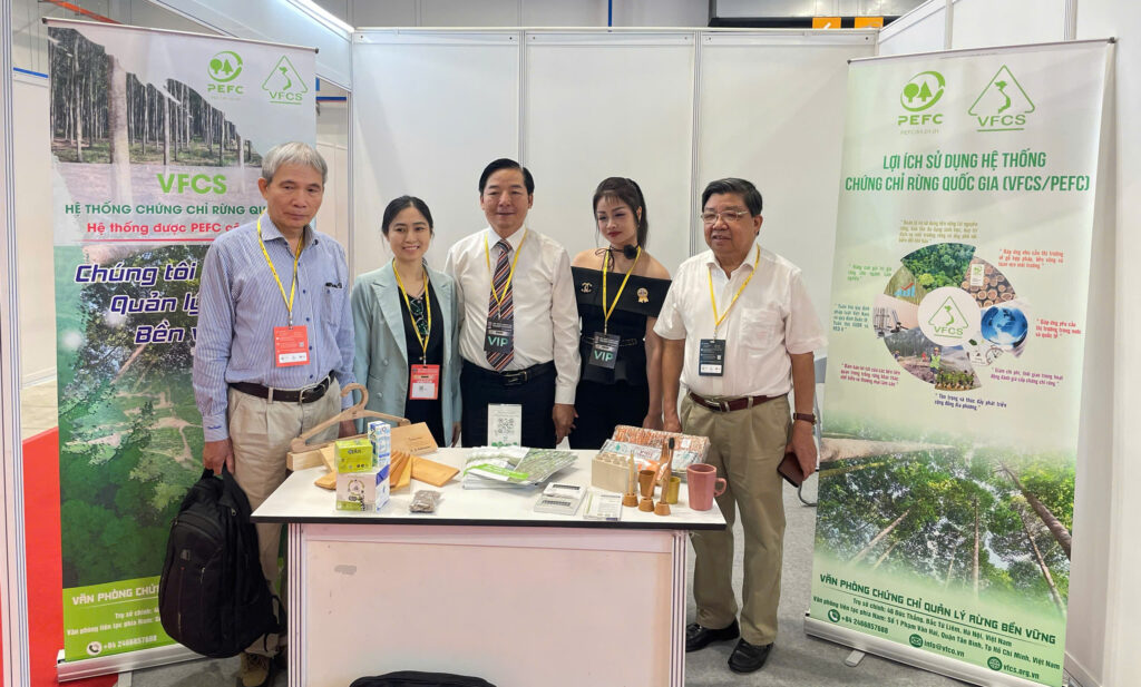 VFCO đã góp mặt tại sự kiện này để hỗ trợ doanh nghiệp tìm hiểu về Hệ thống chứng chỉ rừng quốc gia (VFCS/PEFC) và các tiêu chuẩn VFCS/PEFC về QLRBV, RED II và EUDR DDS. Đây là bước quan trọng giúp ngành gỗ Việt Nam nâng cao giá trị xuất khẩu, tiếp cận và hội nhập thị trường toàn cầu.